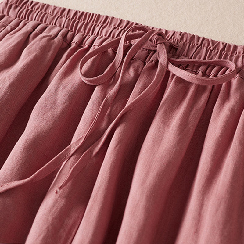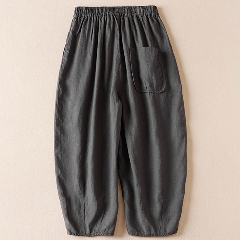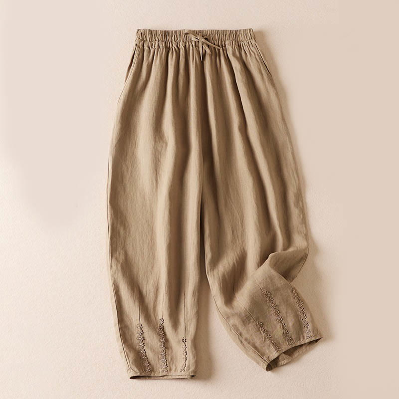 Cotton Linen Harem pants feature an elastic waistband for a comfortable fit and are adorned with delicate small flower embroidery on the legs. Crafted from breathable cotton and linen, these pants offer both style and practicality with their roomy design and handy pockets. The floral embroidery adds a touch of elegance, making these pants a versatile choice for relaxed wear with a hint of sophistication.💕