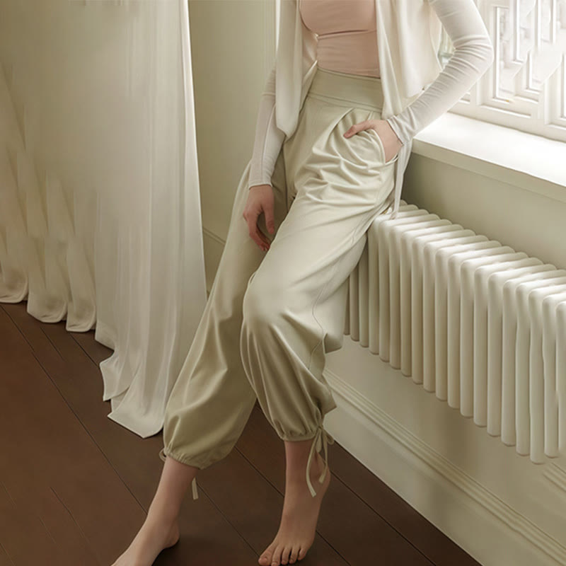 Drawstring Hems Women's Leica Pants offer flexibility, comfort, and ease of movement. The adjustable drawstring hems allow for a personalized fit, making them ideal for walking, yoga, or relaxing at home. With practical pockets and a relaxed design, these pants help you feel grounded, free, and ready for any calm or active moment.💕