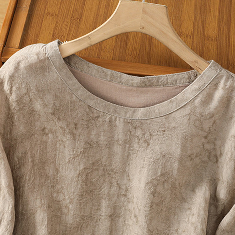 Buddha Stones Casual Retro Solid Color Crew Neck Design Drawstring Half Sleeve Cotton Polyester Midi Dress  - Tan - US14,UK/AU18,EU46 (2XL) - image 0