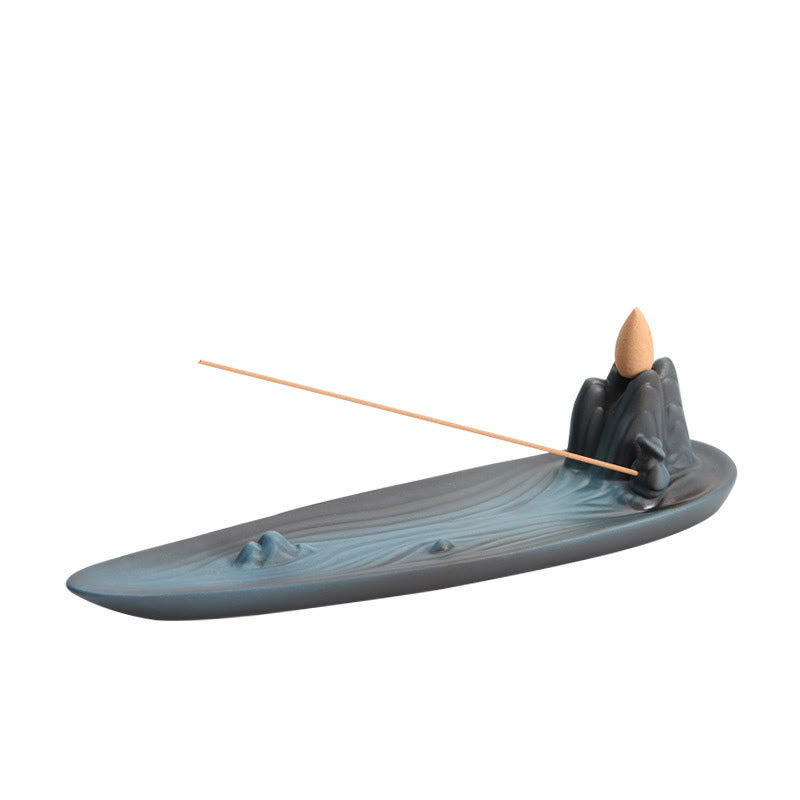 Buddha Stones Double Koi Fish Mountain Healing Ceramic Stick Incense Burner Decoration - Blue-Green Mountain 27*7*6.5cm - image 6