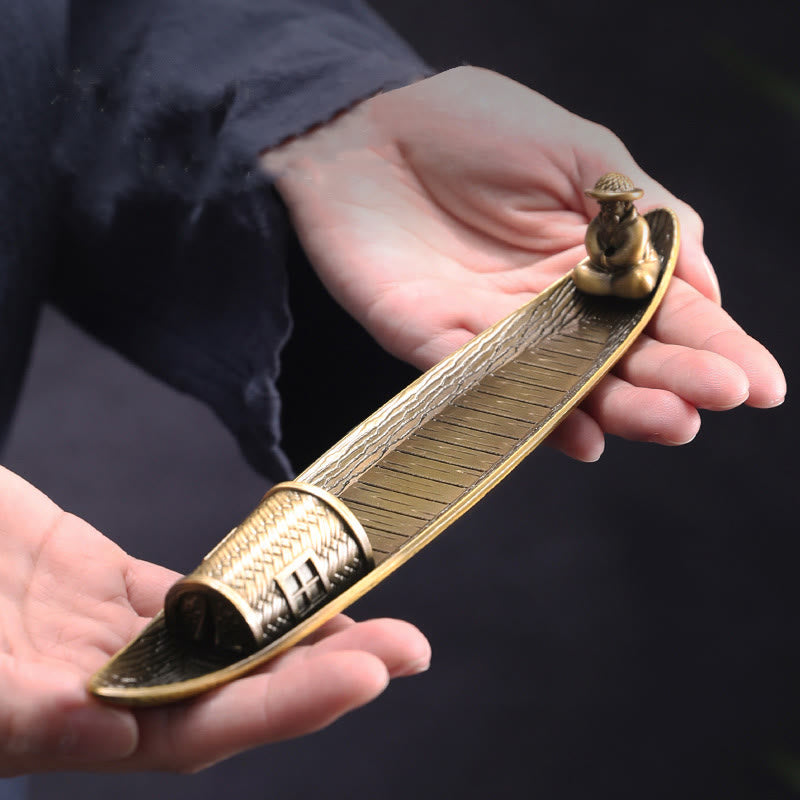 Buddha Stones Fisherman Boat Alloy Incense Stick Holder Healing Incense Burner Decoration