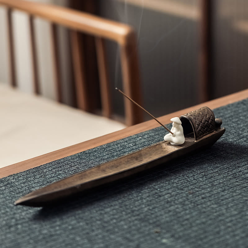Buddha Stones Fisherman Zen Healing Brown Ceramic Stick Incense Burner Decoration - 30.5*3.5*4.2cm - image 0