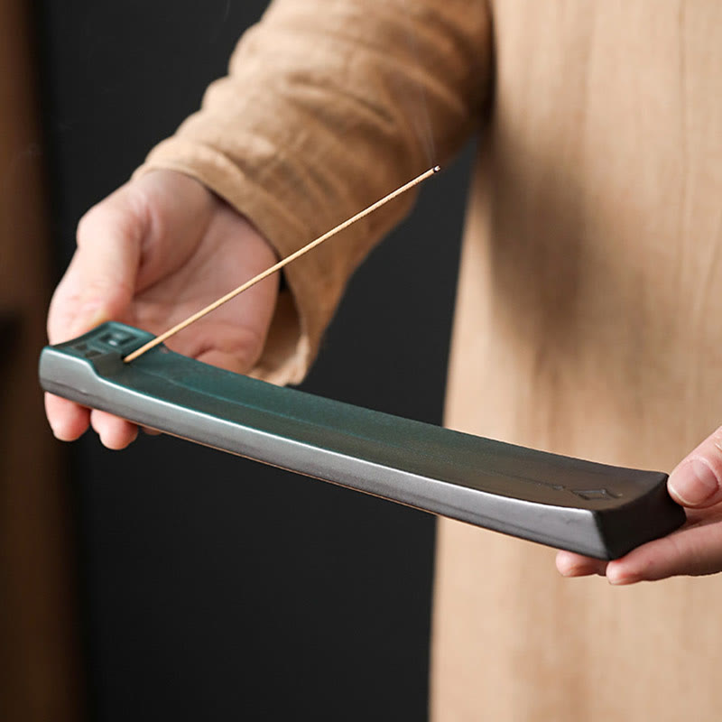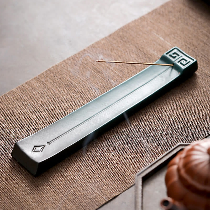 Buddha Stones Moon Rabbit PiXiu Mountain Healing Ceramic Stick Incense Burner Decoration - Simple Pattern 23.4*3.7*1.2cm - image 14