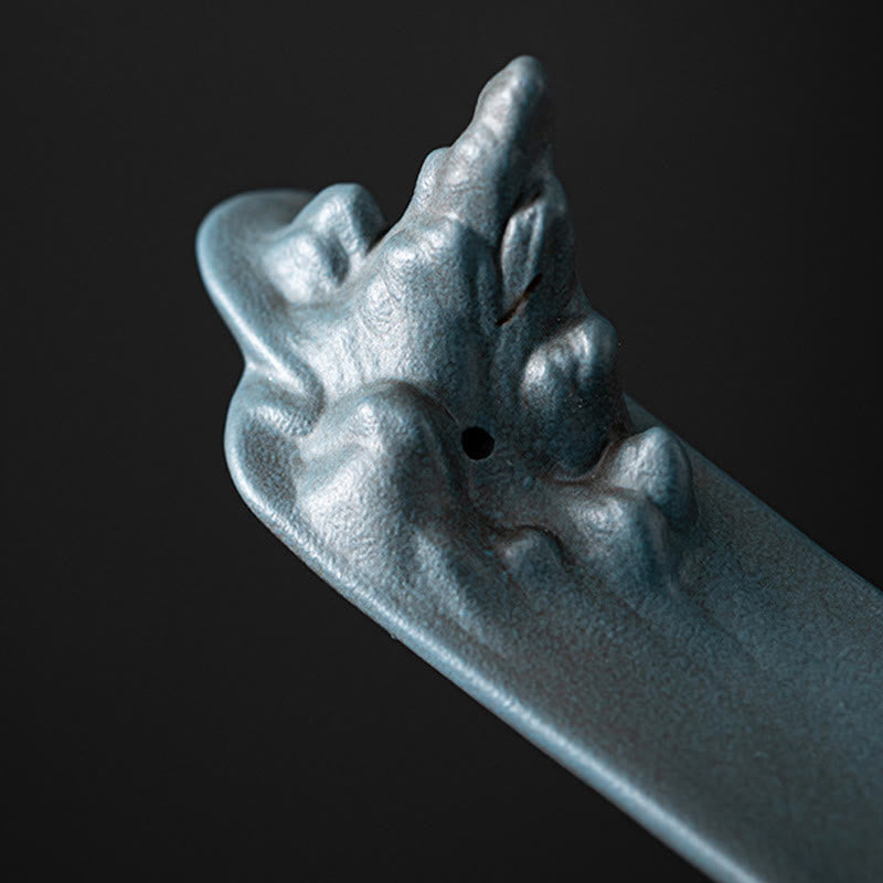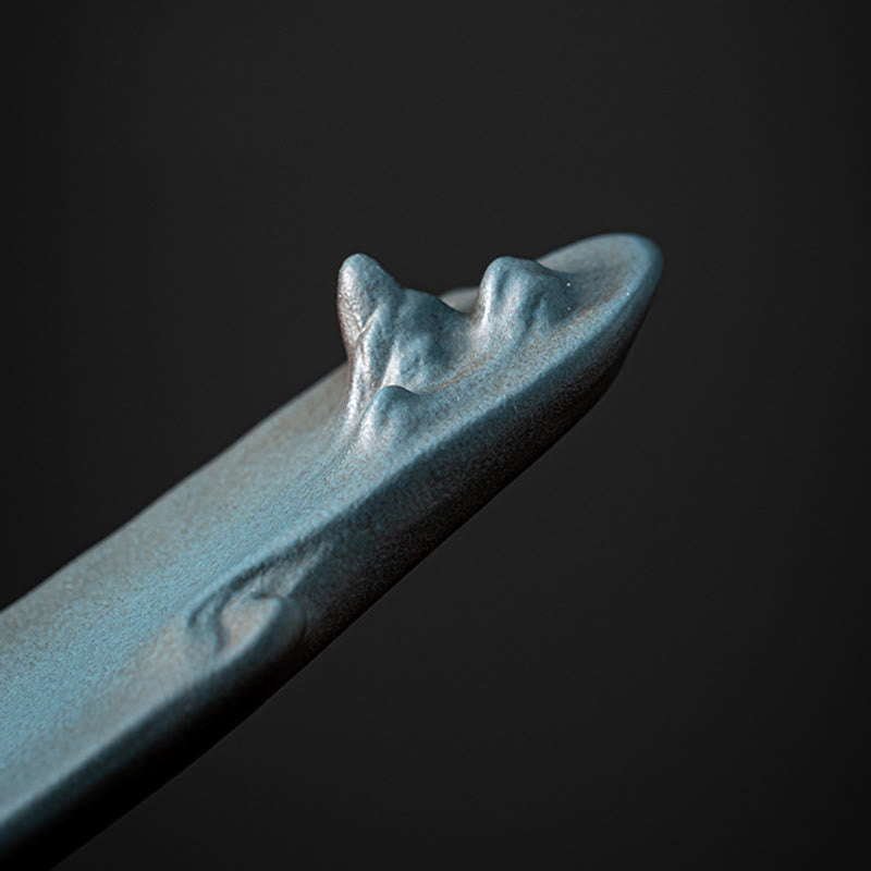 Buddha Stones Mountains Boat Design Spiritual Healing Ceramic Stick Incense Burner Decoration - Cyan 27.3*4.1*6cm - image 9