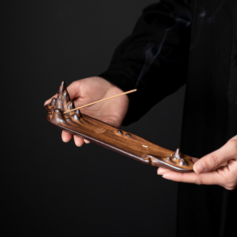 Buddha Stones Mountains Boat Design Spiritual Healing Ceramic Stick Incense Burner Decoration - Brown 27.3*4.1*6cm - image 0