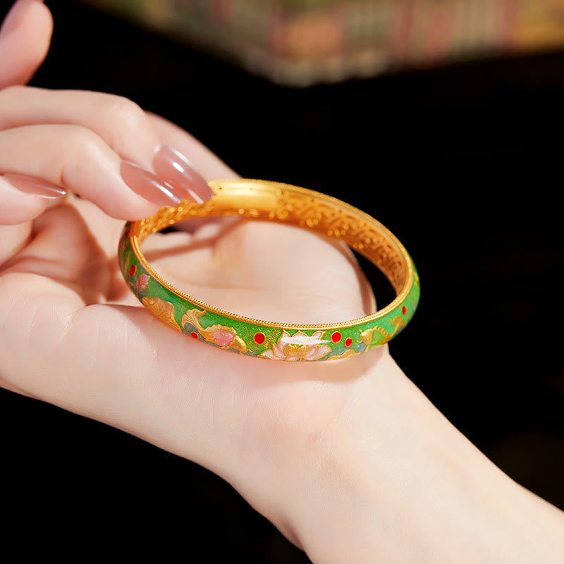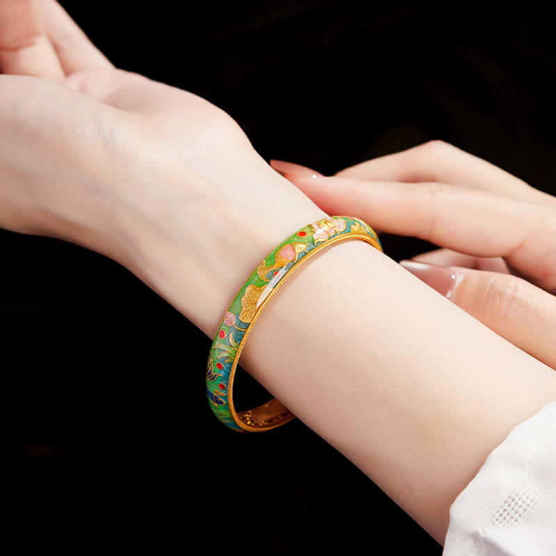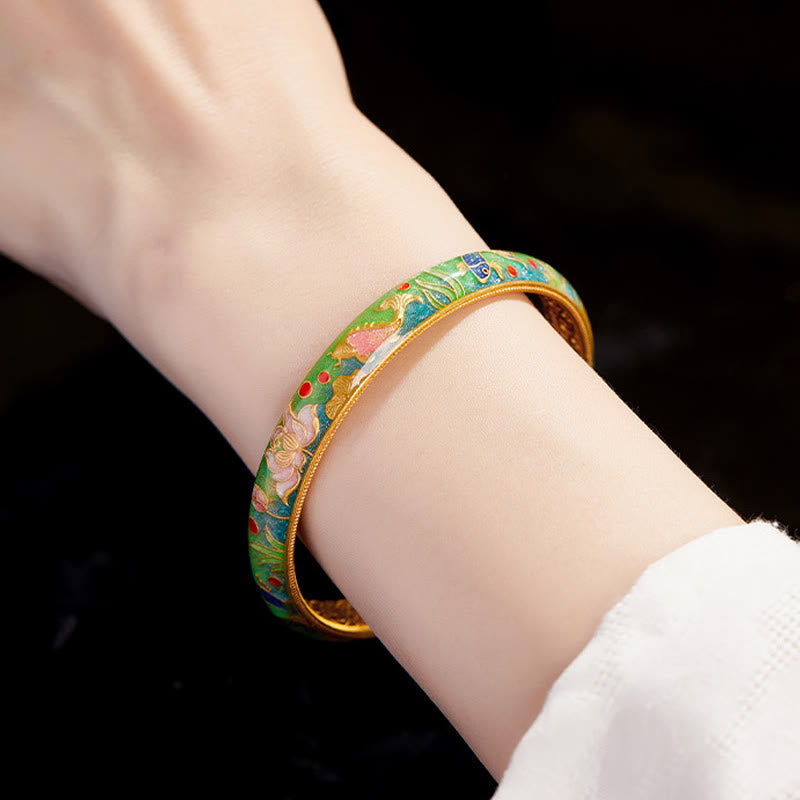 Buddha Stones 999 Sterling Silver Koi Fish Lotus Hollow Design Wealth Bracelet Bangle 2.28 IN (58 MM) - image 1