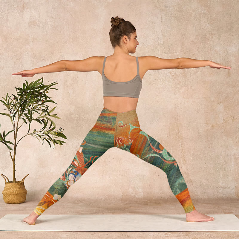 Buddha Stones Dunhuang Flying Apsaras Print Gym Leggings Women's Yoga Pants