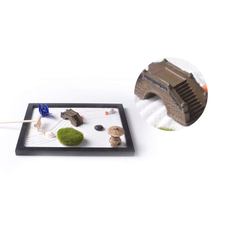 Immerse yourself in a serene oasis with our Buddha Stones Koi Fish Small Bridge Grass Landscape Peace Meditation Zen Garden Decoration. Handcrafted with premium materials, this decoration embodies the essence of peace, enlightenment, and prosperity. The Zen Circle symbolizes effortlessness and imperfection, while the Koi Fish represents luck, abundance, and success. Create a harmonious atmosphere and invite positive energy into your surroundings with this meaningful piece of art.