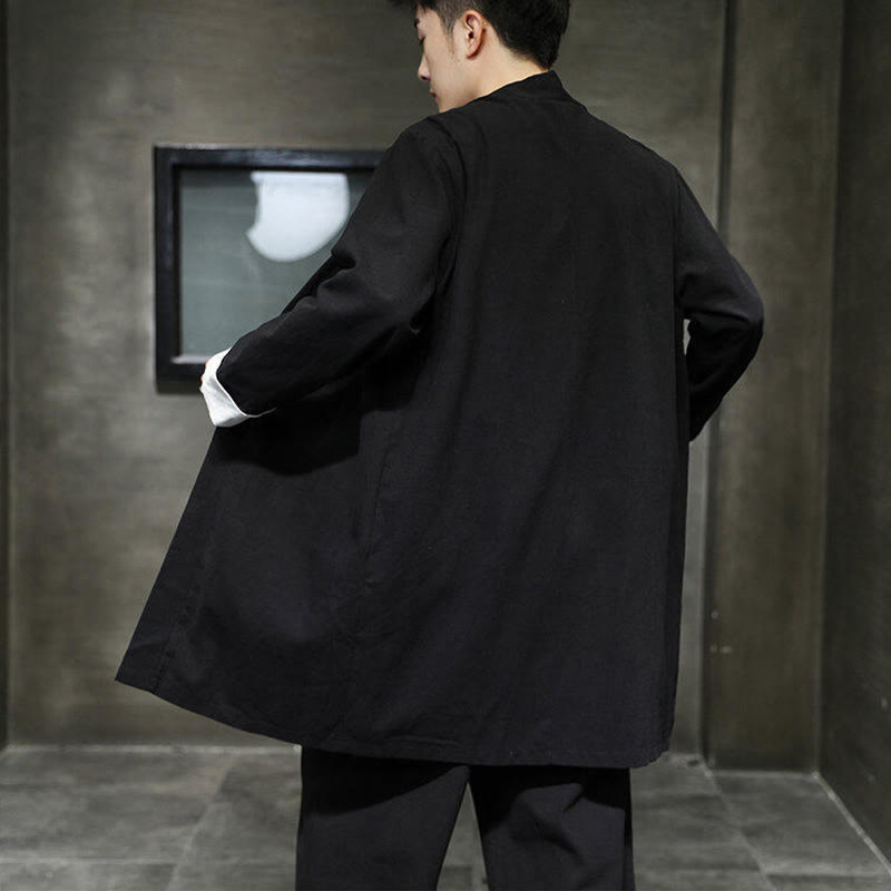 Buddha Stones Spring Long Sleeve Open Front Men's Cotton Linen Zen Jacket Kimono - Black - US/UK/AU46,EU56 (5XL) - image 8