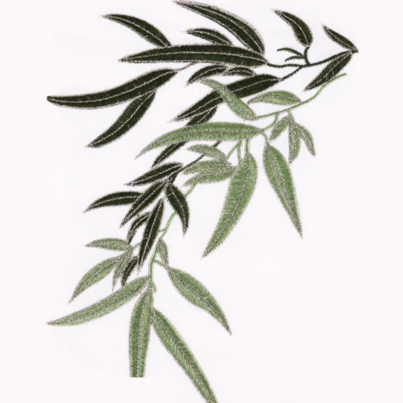 Buddha Stones 2Pcs Fall Green Bamboo Leaves Embroidery Frog-Button Tai Chi Meditation Qigong Zen Practice Unisex Cotton Clothing Set