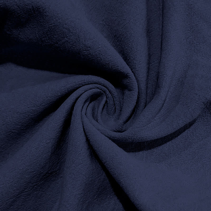 Buddha Stones Solid Color Buttons Drawstring Men's Cotton Pants With Pockets