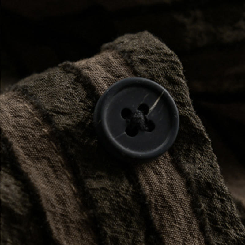 Buddha Stones Vintage Striped Buttons Down Stand Collar Long Sleeve Men's Cotton Shirt