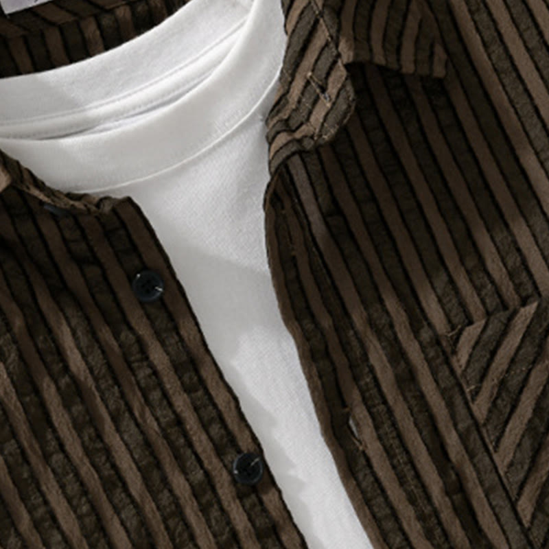 Buddha Stones Vintage Striped Buttons Down Stand Collar Long Sleeve Men's Cotton Shirt - SaddleBrown - US/UK/AU42,EU52 (3XL) - image 7