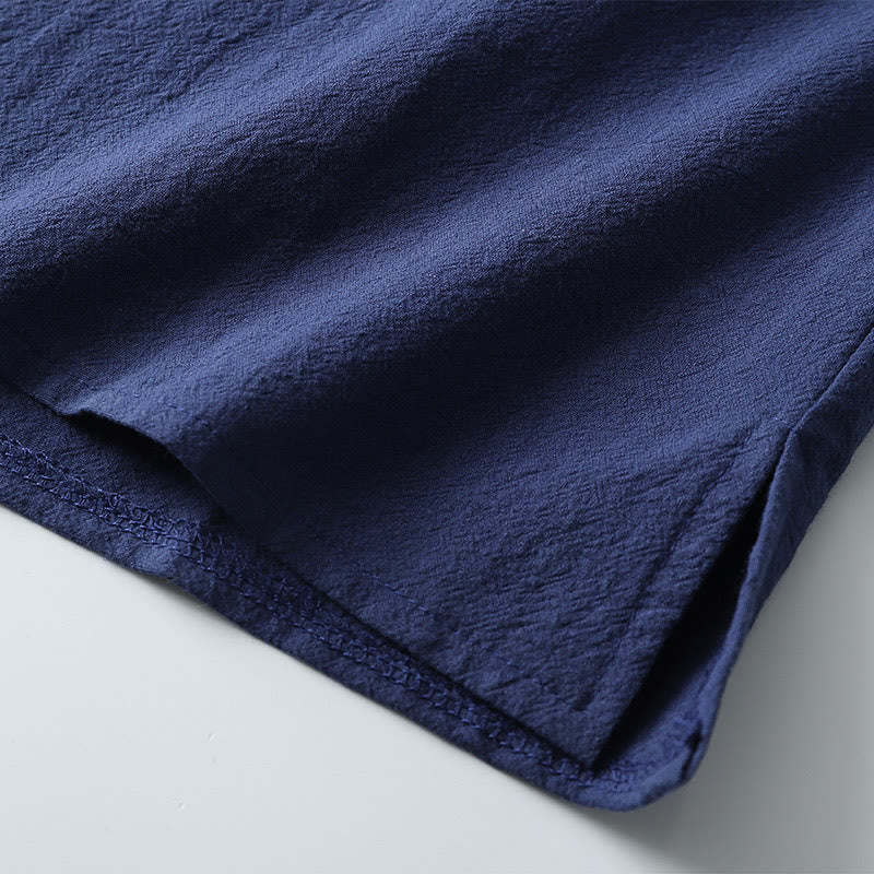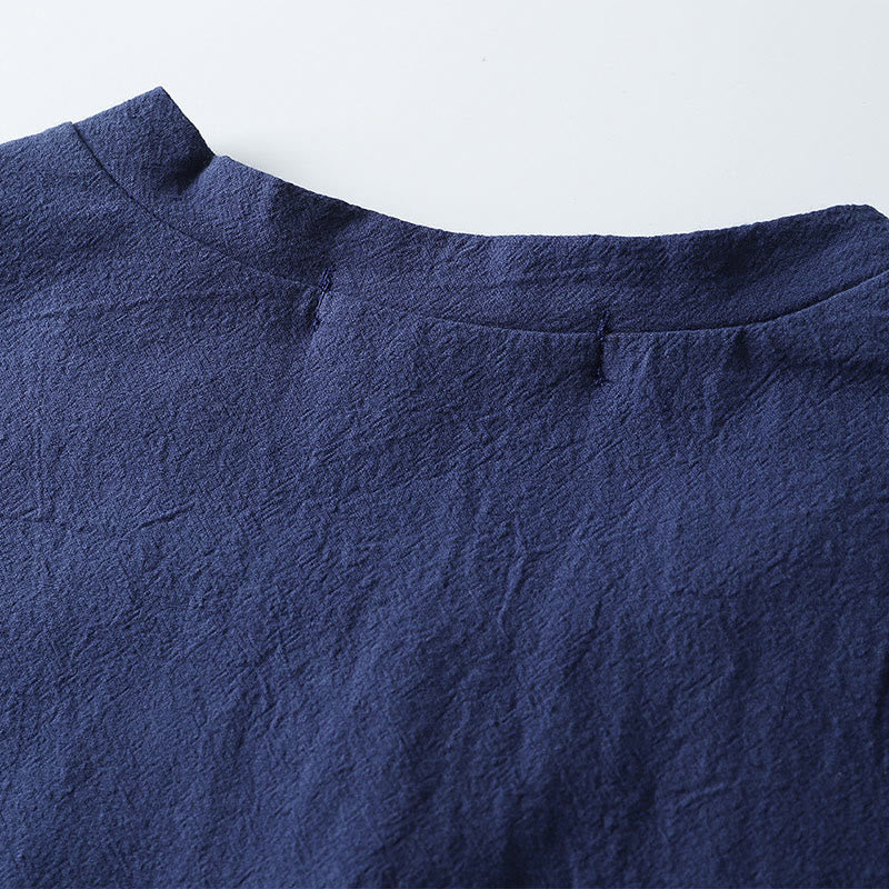 Buddha Stones Loose Men's T-shirt Solid Color Top Short Sleeve Button Notched Neck Soft Shirt