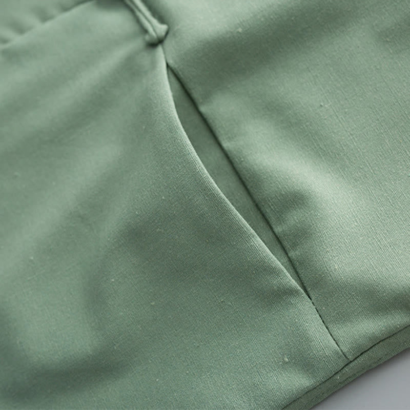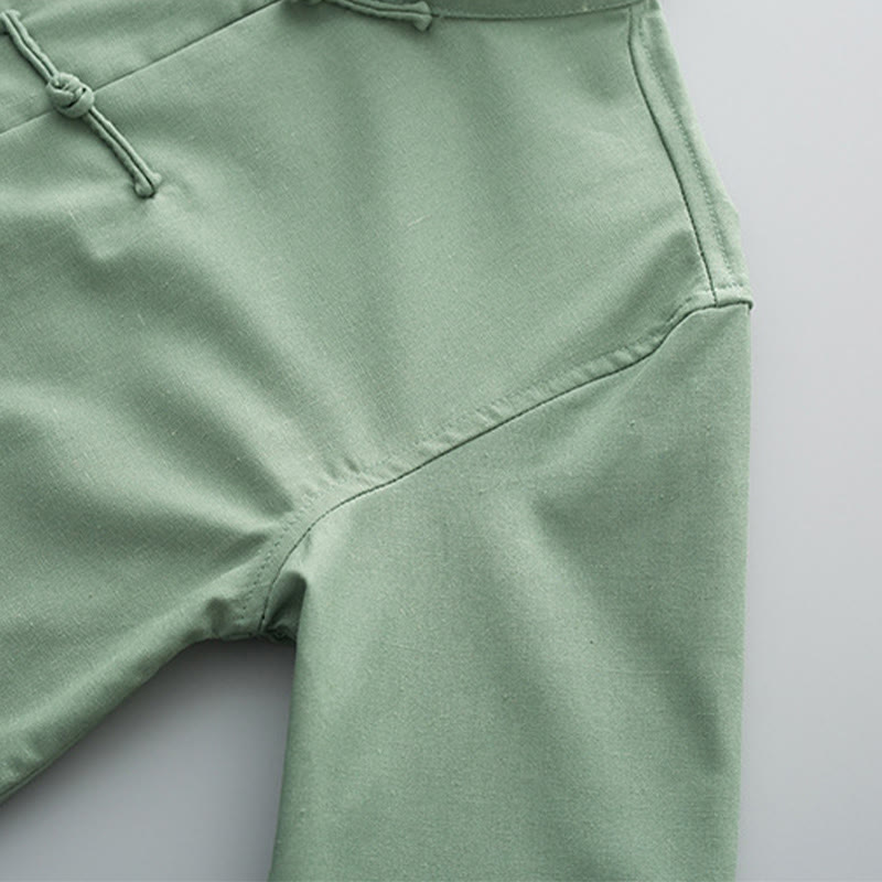 Buddha Stones Solid Embroidered Waves Long Sleeve Frog-Button Cotton Linen Men's Shirt - LightGreen - US/UK/AU44,EU54 (4XL) - image 0