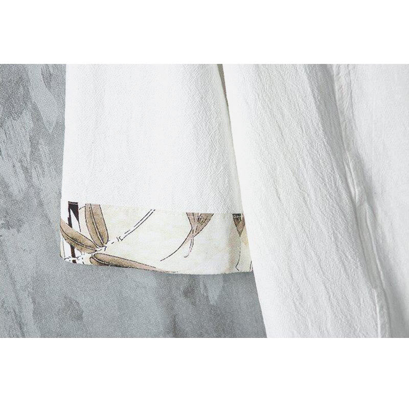 Buddha Stones Summer Chinese Frog-Button Printing Men's Plain Patchwork Half Sleeve Cotton Linen Shirt - White - US/UK/AU46,EU56 (5XL) - image 1