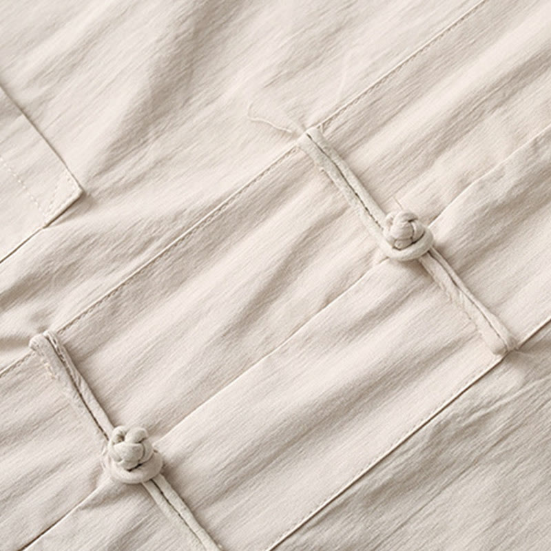 Buddha Stones Tang Frog-Button Three Quarter Sleeve Shirt Wide Leg Pants Cotton Linen Men's Suit - White - US/UK/AU44,EU54 (4XL) - image 6