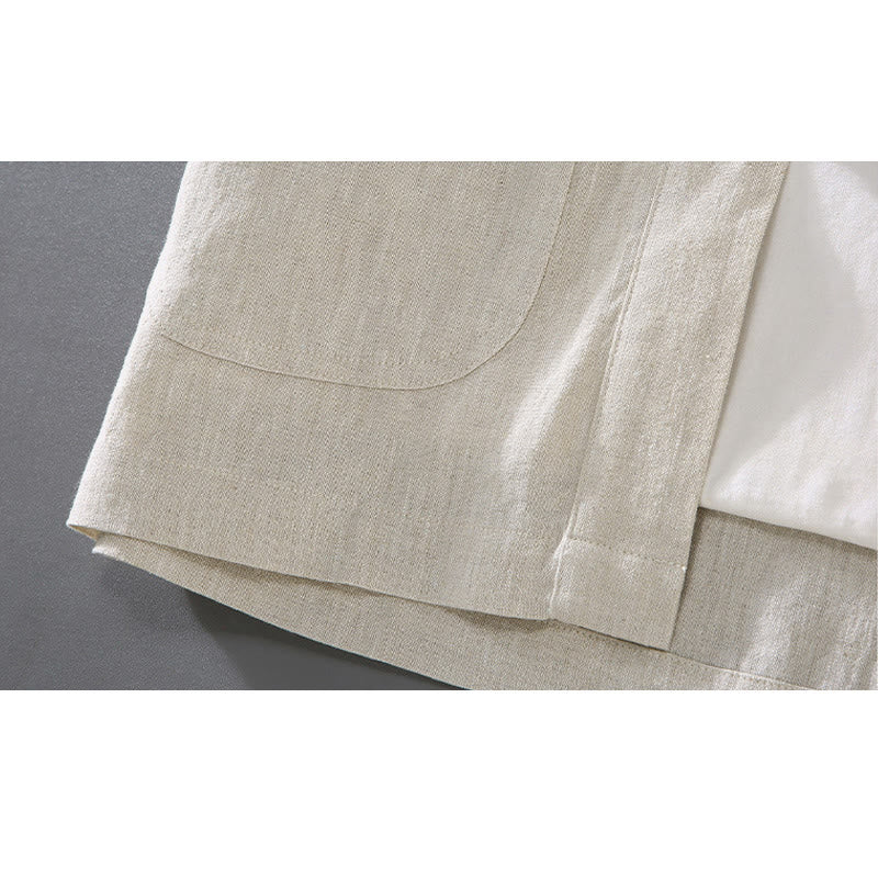 Buddha Stones Vintage Plain Tang Suit Chinese Frog-Button Cotton Linen Men's Shirt With Pockets - Beige - US/UK/AU46,EU56 (5XL) - image 0