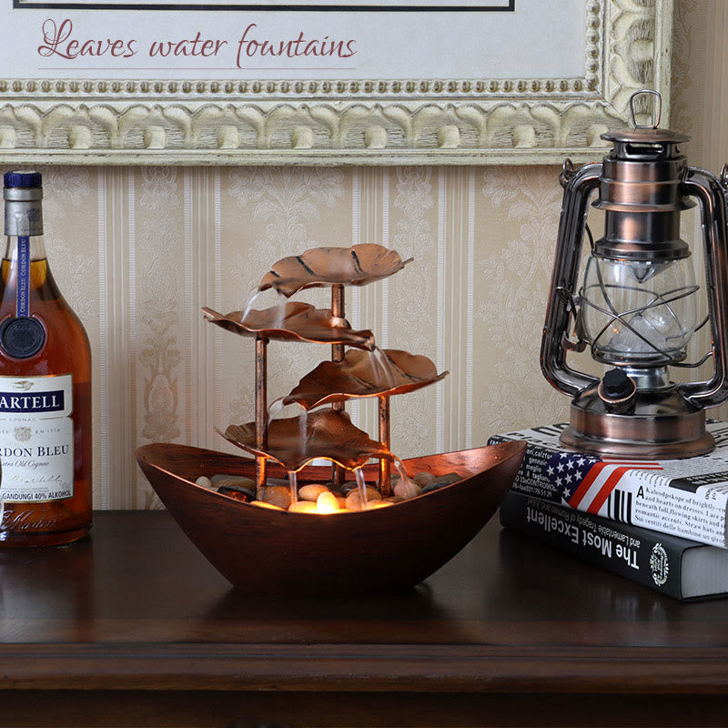 Buddha Stones Lotus Leaf Shaped Waterfall Fountain Tabletop Ornaments With LED Light Home Office Desktop Decoration - Brown(Metal Version) - image 20