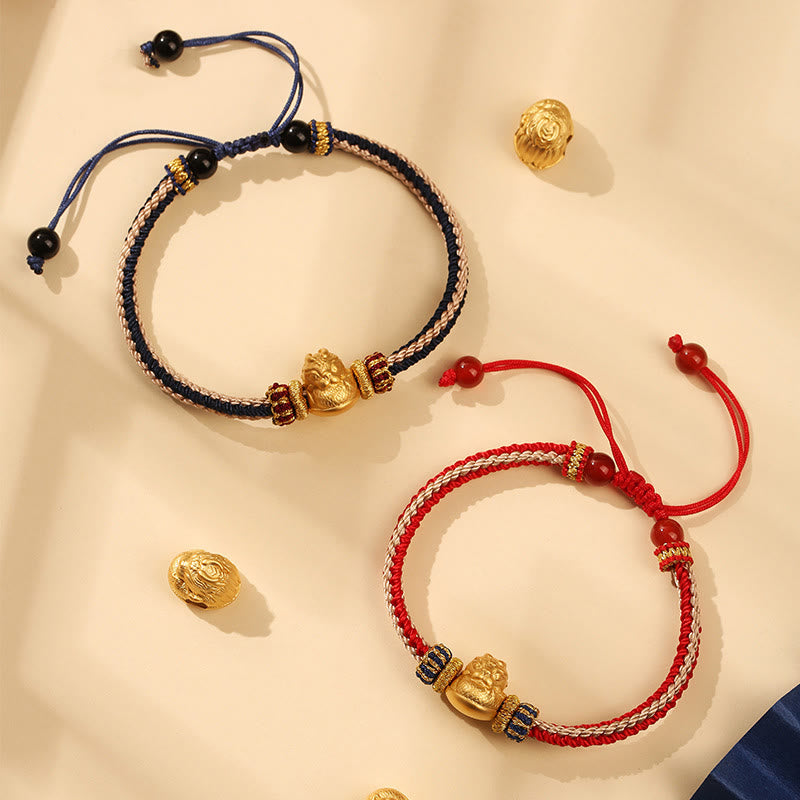 Buddha Stones 925 Sterling Silver Baby Dragon Luck Strength Handmade Braided Bracelet - image 1