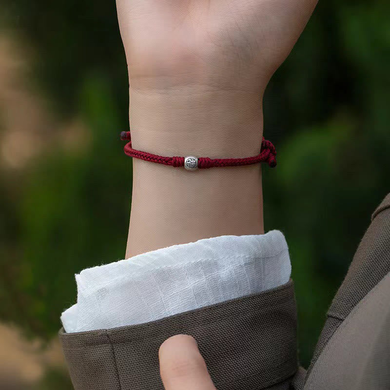 Buddha Stones Handmade String 925 Sterling Silver Fu Bead Braided Fortune Bracelet