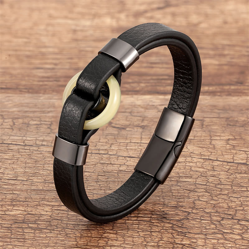 Round Green Aventurine Leather Bracelet features a central round Green Aventurine gemstone, symbolizing prosperity and luck. Each variant highlights a unique stone such as Black Onyx for strength, Hematite for focus, or Rose Quartz for love. The leather strap and magnetic buckle ensure durability and easy adjustment. This meaningful design combines natural materials and thoughtful craftsmanship for balance and well-being.💕