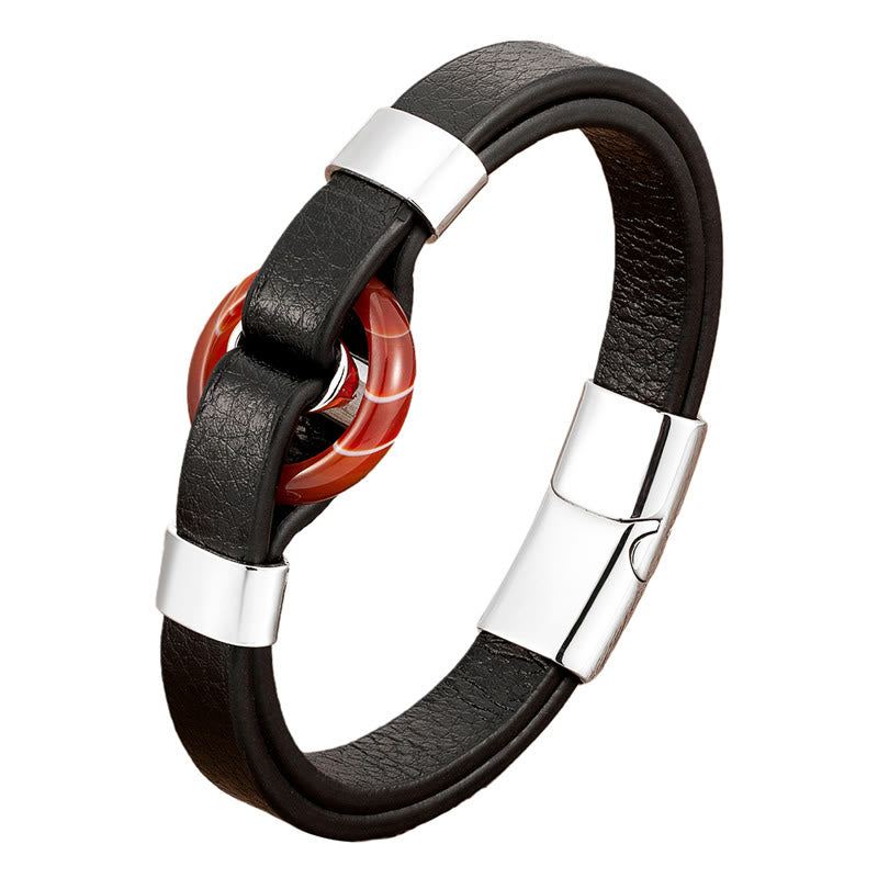 Buddha Stones Round Green Aventurine Black Onyx Hematite Agate Rose Quartz Stone Balance Leather Magnetic Buckle Bracelet - Red Agate-Silver - 18-22cm - image 22