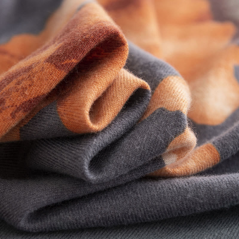 Buddha Stones Tibetan Shawl Artistic Style Hibiscus Syriacus Print Fall Winter Cozy Warm Scarf Wrap