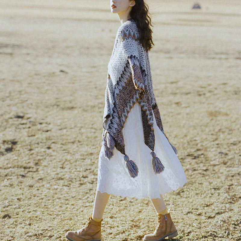 Embrace the winter season with the Buddha Stones Tibetan Shawl in Gray and Brown Striped Knitted Tassels. This scarf wrap is an ideal accessory for those who appreciate understated elegance. The subtle hues of gray and brown are seamlessly intertwined, creating a look that is both sophisticated and earthy. Perfect for travel or everyday wear, it offers warmth and comfort without compromising style. This shawl is a testament to tranquility and simplicity, making it an essential addition to any mindful wardrobe.