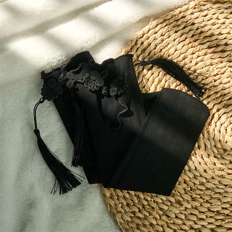 - Traditional-Inspired Detail: Featuring elegant Chinese frog-button accents and subtle tassels, these mid-calf socks bring a modern twist to classic qipao aesthetics.