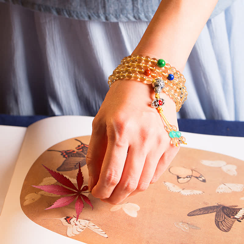 925 Sterling Silver 108 Mala Beads Natural Citrine Red Agate Amber Pleasure Charm Bracelet