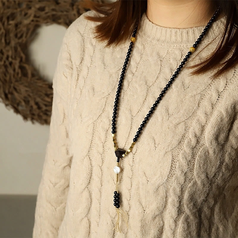 • Material: Black Onyx, Three-eyed Dzi Bead, Ebony Wood, Tiger Eye, Copper, Sterling Silver
