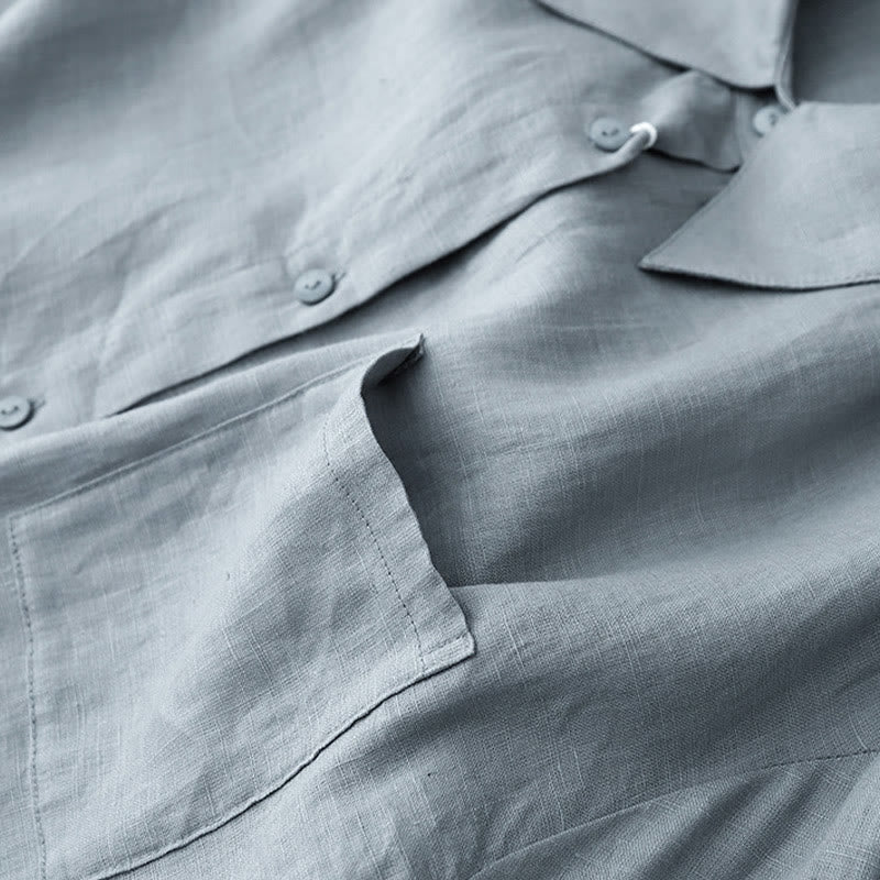 Buddha Stones Summer 2pcs Plain Long Sleeve Shirt Top Cardigan Shorts Meditation Clothing Women's Set With Pockets