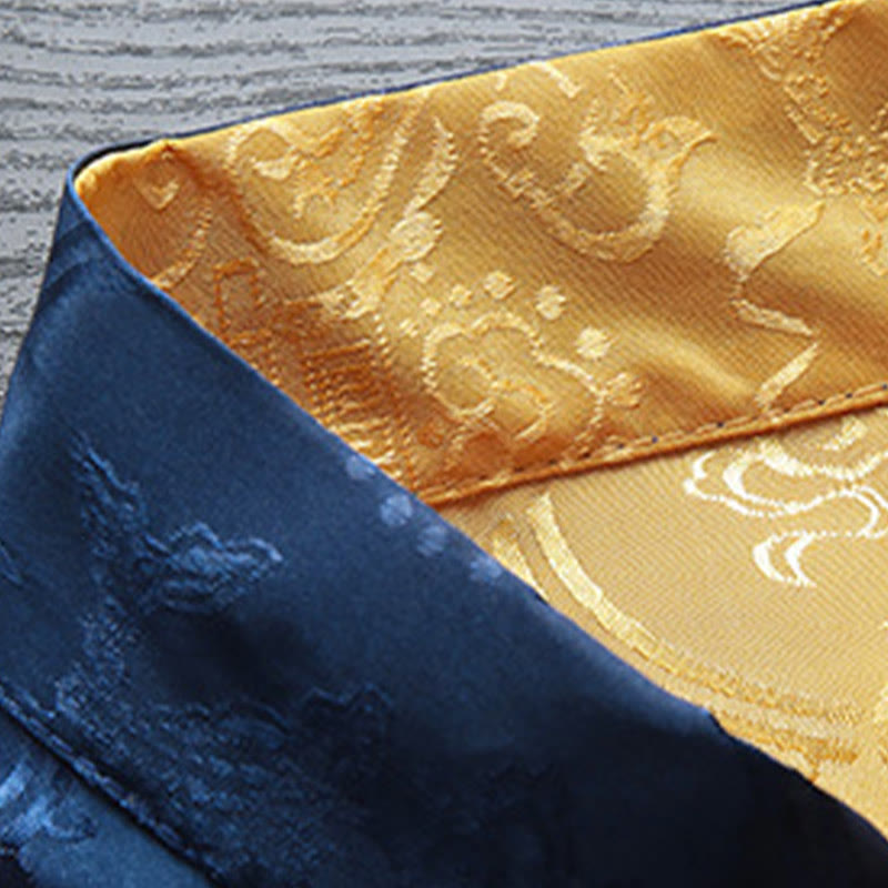 Buddha Stones Men's Frog-Button Tang Suit Koi Fish Pattern Long Sleeve Jacket Shirt With Pockets - CornflowerBlue - US/UK/AU42,EU52 (3XL) - image 12