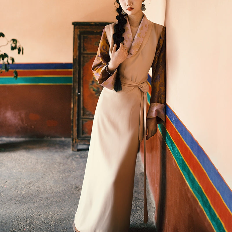 The most popular clothing is the Tibetan robe. The Tibetan robe is the most typical article of apparel for Tibetans. It is generally distinguished by a broad lapel, long sleeves, a loose waist, and a huge garment front. In addition, the Tibetan robes, pulu, silk, or other leather laces are trimmed at the collar, cuff, front edge, and bottom hem.