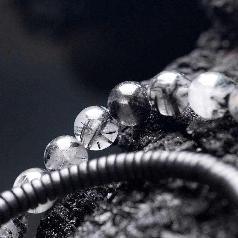 - Material: Black Rutilated Quartz, Ebony, Copper