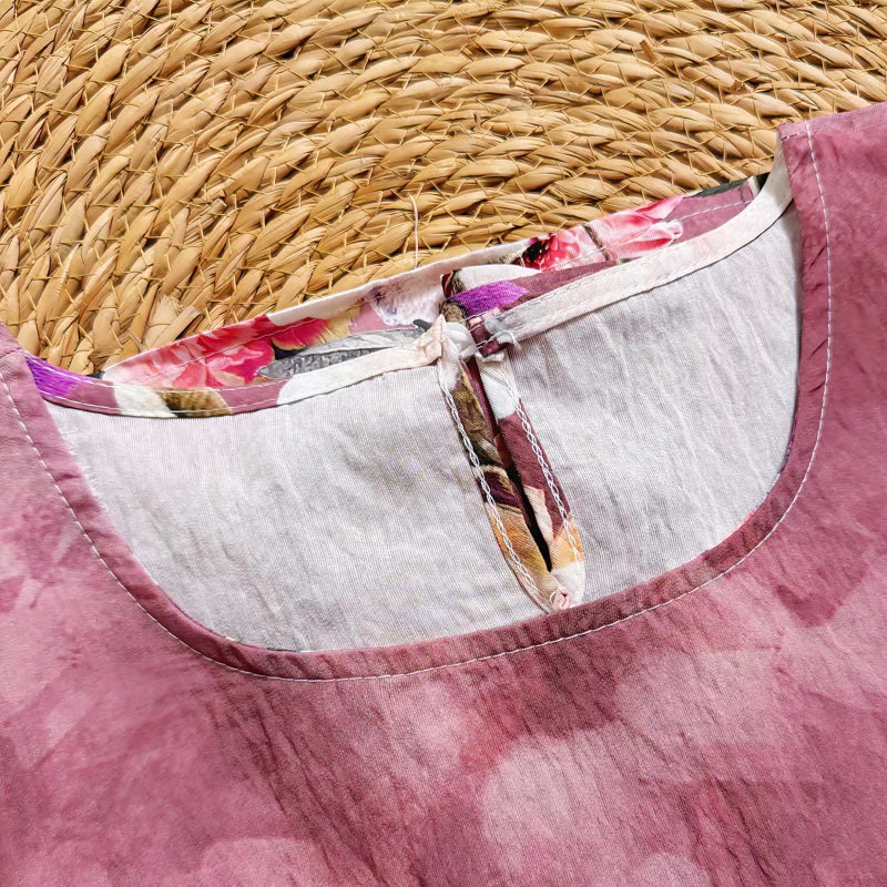 Buddha Stones Casual Printed Various Petals Dahlia Peony Women's Crew Neck Design Half Sleeve Polyester T-shirt - PaleVioletRed - US4-14,UK/AU8-18,EU36-46 (F) - image 0