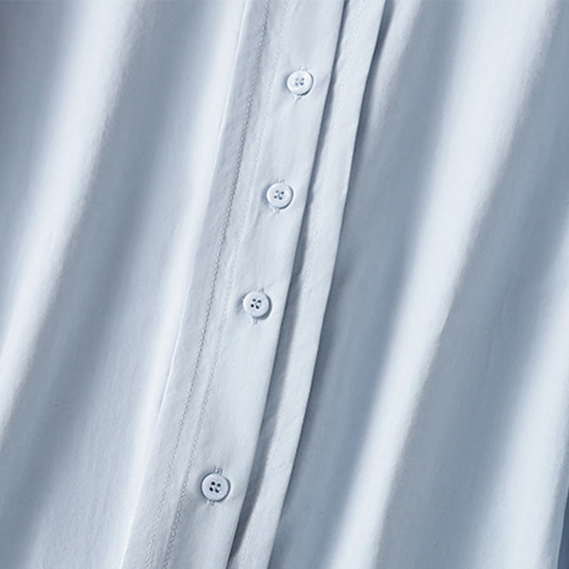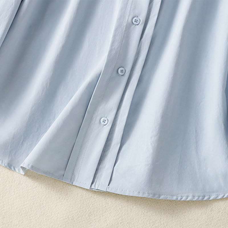 Buddha Stones Casual Women's Long Sleeve Lace Lapel Cotton Shirt - LightSkyBlue - US12,UK/AU16,EU44 (2XL) - image 0