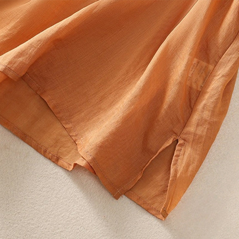 Buddha Stones Embroidery Floral Hem Slit Women's Cotton Linen Half Sleeve T-Shirt - DarkOrange - US14,UK/AU18,EU46 (2XL) - image 9