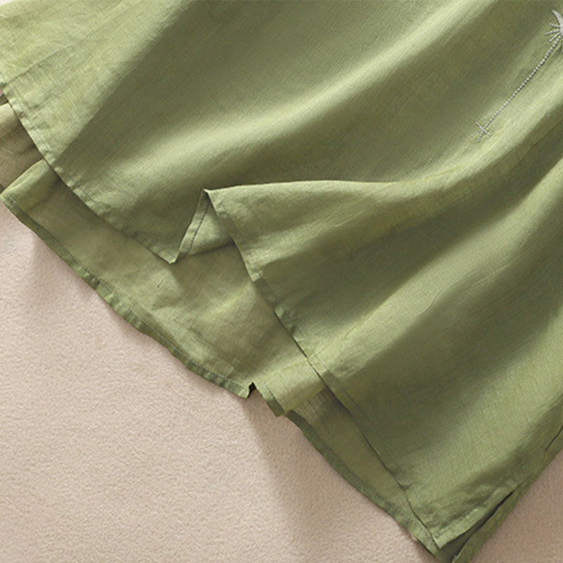 Buddha Stones Embroidery Floral Hem Slit Women's Cotton Linen Half Sleeve T-Shirt - LimeGreen - US14,UK/AU18,EU46 (2XL) - image 0