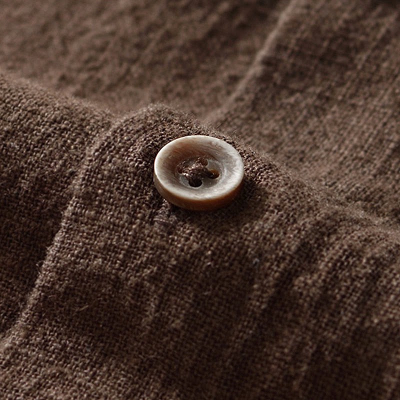 Buddha Stones Fall Solid Long Sleeve Buttons Men's Ramie Cotton Shirt With Pockets