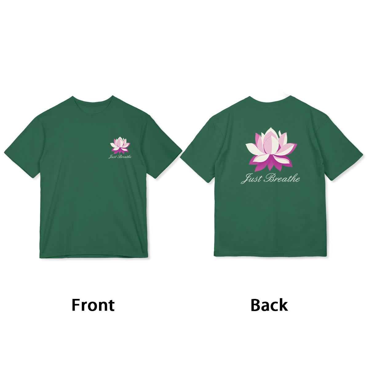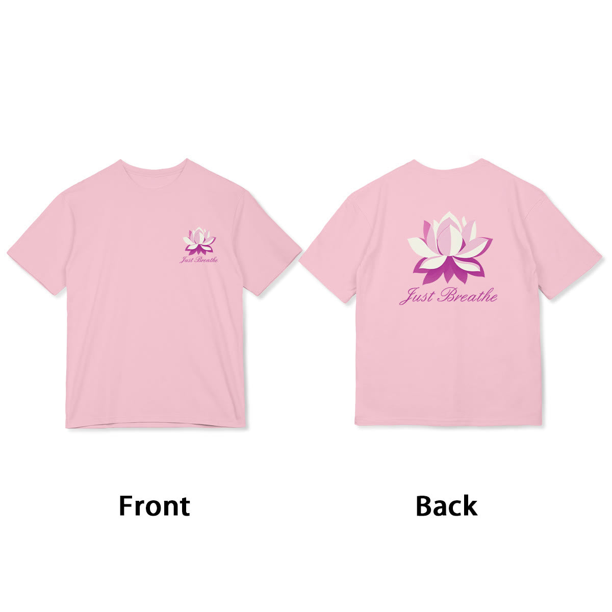 Lotus Just Breathe Tee features a serene lotus design, symbolizing purity and enlightenment. The words "Just Breathe" remind us to pause and find tranquility in every moment. Crafted from soft, breathable fabric, this t-shirt offers comfort and peace throughout the day. Let this mindful piece inspire a calm, centered mindset and a deeper connection to inner peace.