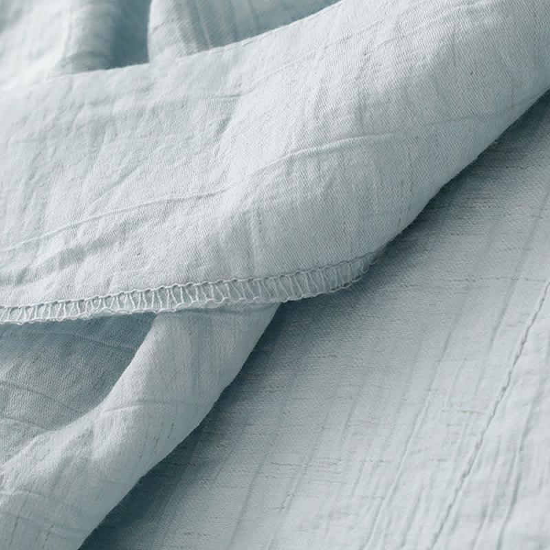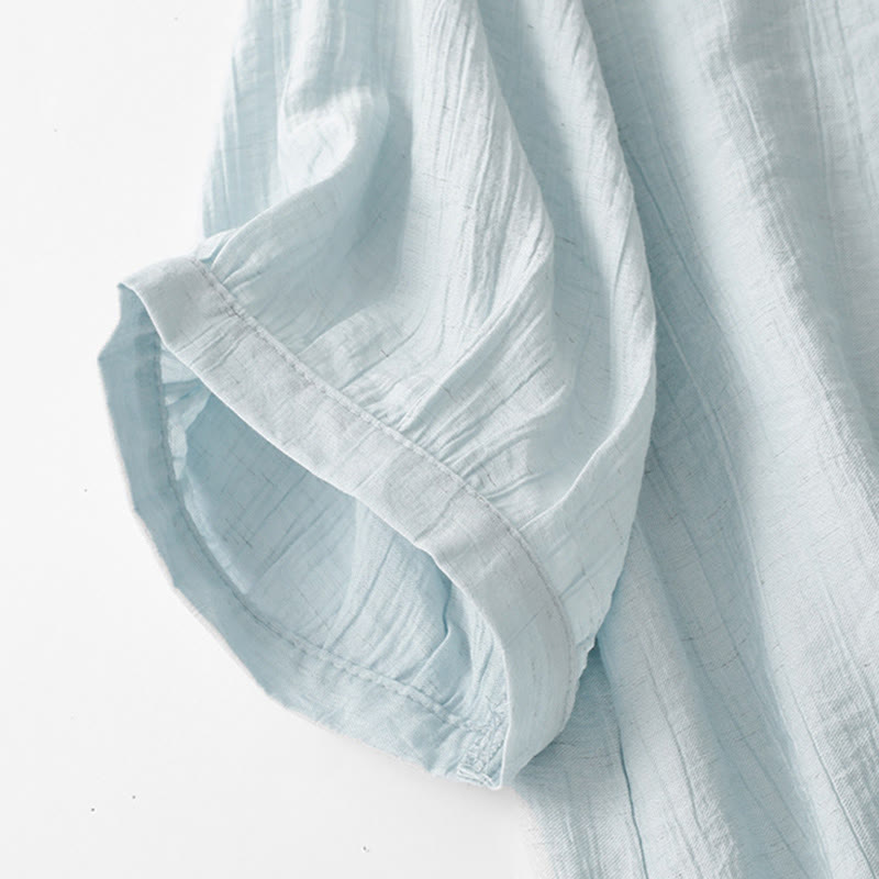 Buddha Stones Plain Asymmetrical Lace-Up Design Puff Short Sleeve Women's Cotton Shirt