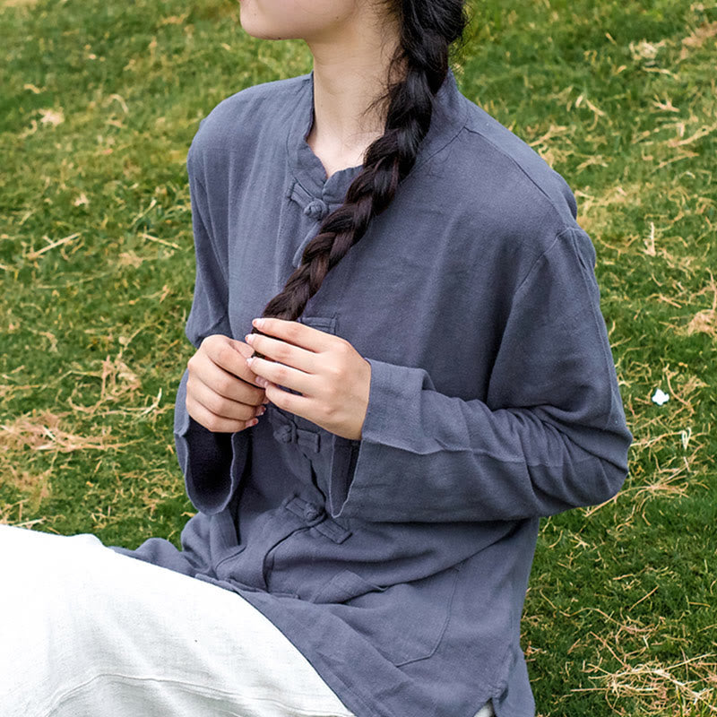 Solid Color Frog-Button Women's Shirt blends tradition with simplicity. The classic frog-button design adds cultural depth, symbolizing harmony and balance, while the relaxed fit ensures comfort. Thoughtfully designed with pockets for practicality, this shirt is ideal for those seeking a peaceful, grounded lifestyle. Perfect for meditation, casual outings, or quiet moments of reflection, it embodies a sense of calm and effortless elegance.💕