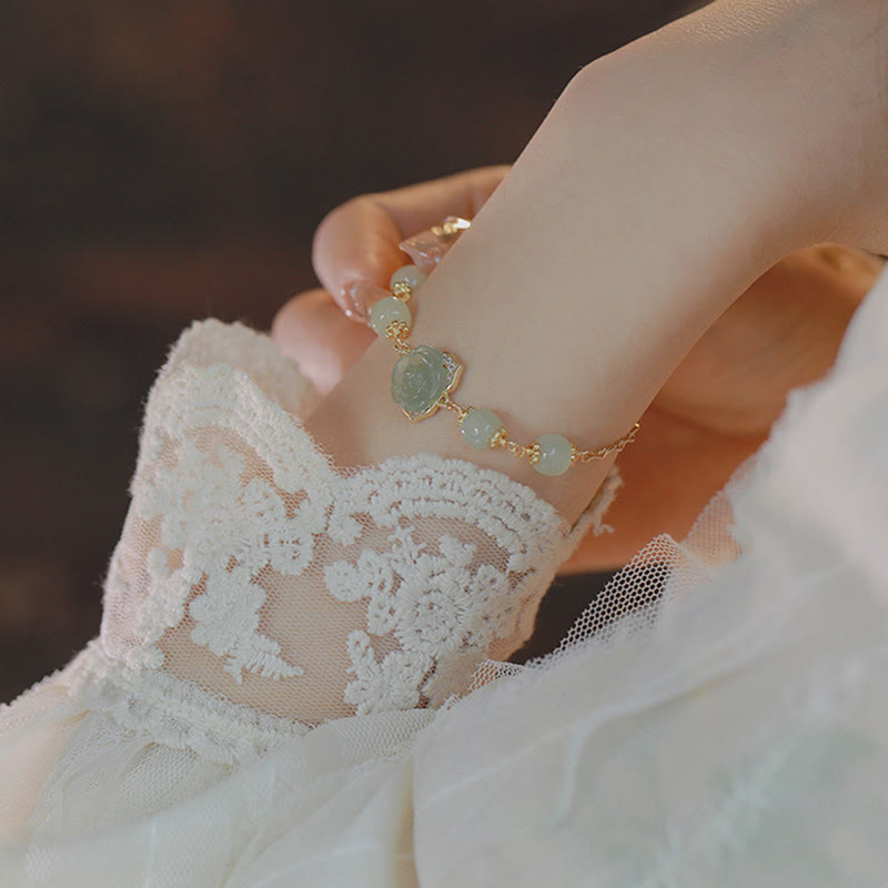 Embrace the beauty and power of jade with the Buddha Stones 14K Gold Plated Hetian Jade Rose Flower Luck Chain Bracelet. This exquisite bracelet combines the elegance of rose flower design with the prosperous energies of jade, enhancing your aura of abundance and luck.💕