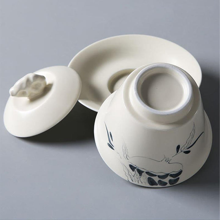 Hand Painted Pomegranate Hibiscus Pine Lotus Ceramic Gaiwan Sancai Teacup Kung Fu Tea Cup And Saucer With Lid