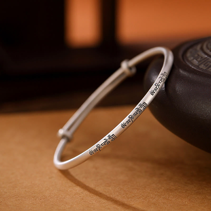 The Buddha Stones bracelet, meticulously crafted from 999 sterling silver, radiates the spiritual depth of the 'Om Mani Padme Hum' mantra. Symbolizing love, unity, and cosmic connection, this bangle serves as both a fashion statement and a reminder of the profound Tibetan teachings. Its shimmering silver exudes elegance while its engraved mantra speaks to a deep, soulful connection. A timeless piece for the spiritually attuned.💕