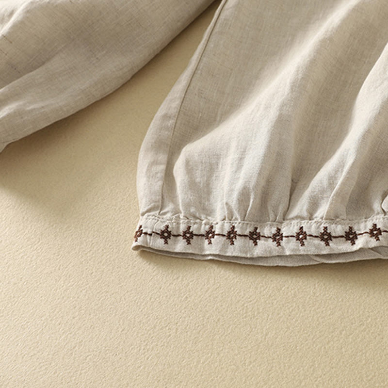 Buddha Stones Casual Retro Drawstring Embroidery Design Women's Cotton Linen 7-8 Length Pants With Pockets - Linen - US8-10,UK/AU12-14,EU40-42 (2XL) - image 0