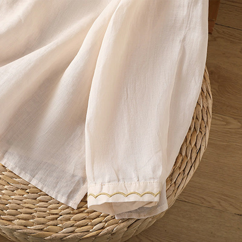 Ethnic Embroidery Cotton Shirts feature exquisite embroidery at the center, adding cultural depth and symbolism to this crew neck design. Made from a cotton-linen blend, it offers breathability and comfort, ideal for peaceful wear. The intricate embroidery reflects heritage and artistry, making it a meaningful choice for those valuing mindfulness and simplicity in their attire.💕