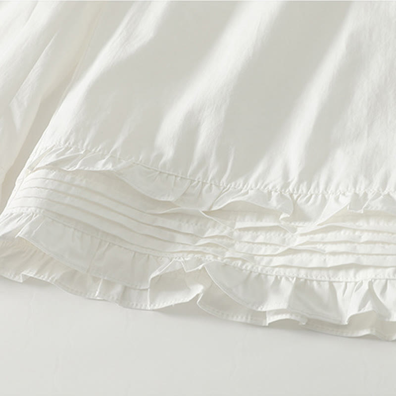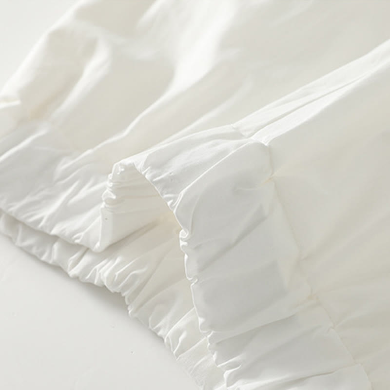 Buddha Stones Artistic Commute Pure Color Ruffled Hem Design Women's Cotton Linen Pants With Pockets - White - US12,UK/AU16,EU44 (2XL) - image 0